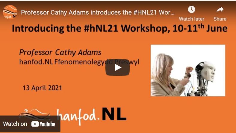 Less than 24 hours ago, we closed down our screens on the successful finale of the hanfod.NL inaugural 2x half day conference. Mike and I would therefore like to take the opportunity to officially thank Professor Cathy Adams for the generous investment of time and energy in the planning and delivery of her outstanding ‘Phenomenology of Practice’ workshop, which is in addition to the contributions as hanfod.NL’s ‘Ffenomenolegydd Preswyl’/’Phenomenologist in Residence‘. The bar has been set high for future events. Thanks also go to Professor Nina Bonderup Dohn, for the lead on our research plans and the wealth of advice on the day-to-day running of hanfod.NL. We must also credit our expert workshop facilitation support, Dr Joni Turville, Dr Begoña Errasti, Dr Iris Yin, and doctoral students, Janine Chesworth and Gillian Lemermeyer.