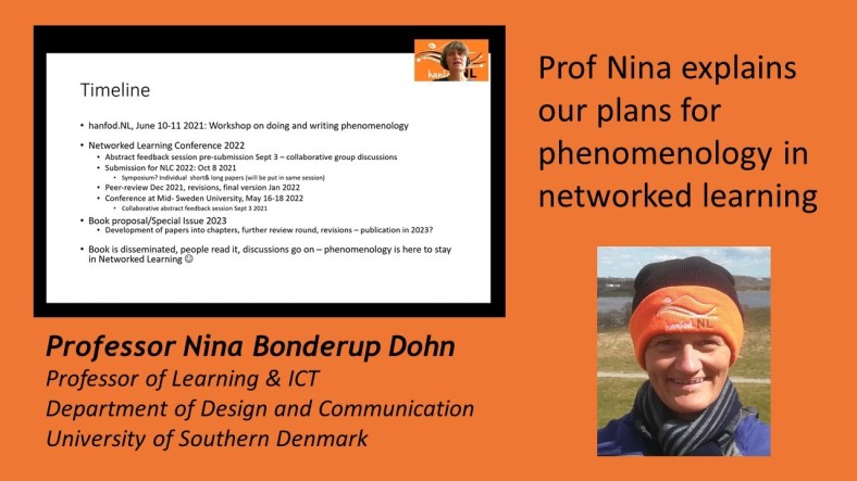 In the words of Nina ‘Phenomenology is here to stay in Networked Learning’.